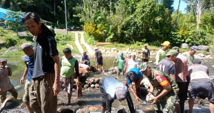 Sekitar 50 warga setempat turut ambil bagian dalam kegiatan tersebut. Mereka bersama Babinsa bergotong royong menyusun batu dan material di aliran sungai untuk membentuk jalur penyeberangan yang dapat dilalui masyarakat.